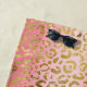 This glam beach towel features gold leopard pattern on a pink ombre background. Add your name to personalize. Perfect for a day at the beach.