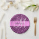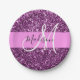 Glam Pink & Purple Glitter Sparkles Monogram Name Paper Plate