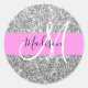 Glam Pink & Silver Glitter Sparkles Monogram Name Classic Round Sticker