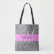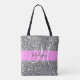 Glam Pink & Silver Glitter Sparkles Monogram Name Tote Bag