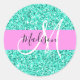 Glam Pink Turquoise Glitter Sparkles Monogram Name Classic Round Sticker