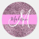 Glam Pink & Violet Glitter Sparkles Monogram Name Classic Round Sticker