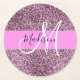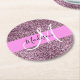 Glam Pink & Violet Glitter Sparkles Monogram Name Round Paper Coaster