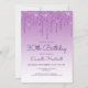 This trendy 30th birthday party invitation features a sparkly purple faux glitter drip border and ombre background. The words "30th Birthday" and the name of the guest of honour appear in purple casual handwriting script, with the rest of the customizable text in sans serif font. The same purple glitter drip design appears on the reverse side. Easily edit the text for any age birthday.