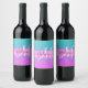 Girly and glam purple, lilac, aqua and turquoise mermaid glitter sparkles gradient monogram name and initial wine label. Your custom name and monogram are written in an elegant hand lettered script with a pink background. A perfect birthday or Christmas gift!