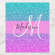 Glam Purple Aqua Glitter Sparkle Gradient Monogram Wine Label