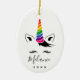 The Glam Rainbow Unicorn Ceramic Ornament designed by Enchantfancy Design Company features the outline of a unicorn's face complete with glamourous eyelashes, ears, a tuft of hair and a fabulous bright rainbow unicorn horn. Personalize with your choice of name and year! Perfect for the unicorn lover in your life.