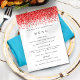 Glam Red Faux Glitter Christmas Party Menu, A sparkly border of red faux glitter is at the top. Easily personalise the text to your own details.