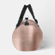 This personalized duffel bag features a monogram and first name in modern black and white script on a glam rose gold faux brushed metal background.