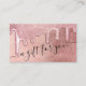 This girly and glamourous gift certificate business card is perfect for a stylish and trendy professional businesswoman. It features faux printed sparkly rose gold thick glitter drips on top of a rose gold foil background. The typography is an elegant cursive script with a modern serif font to match. It's chic, pretty, unique, and luxurious; the perfect way to advertise your business and stylize your marketing and advertisement material for your customers.