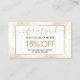 This creative referral card features a delicate background of falling confetti dots in faux gold to give the illusion of shimmer. Encourage customer loyalty by having your clients refer a friend in exchange for a discount or promotion. Personalize the text for your own unique offering. A stylish design created for salons, makeup artists, hair stylists, nail salons and more. Original art and design © 1201AM Design Studio | www.1201am.com