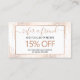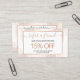 This creative referral card features a delicate background of falling confetti dots in faux rose gold to give the illusion of shimmer. Encourage customer loyalty by having your clients refer a friend in exchange for a discount or promotion. Personalize the text for your own unique offering. A stylish design created for salons, makeup artists, hair stylists, nail salons and more. Original art and design © 1201AM Design Studio | www.1201am.com