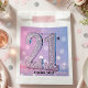 Celebrate a milestone coming-of-age with this dazzling and glamorous 21st birthday design. The artwork features a stunning, high-resolution image of the number "21" encrusted in faux silver diamonds and rhinestones, giving a 3D sparkling effect without the mess of real glitter. The numbers are set against a dreamy, feminine background featuring a pink, purple, and blue gradient with soft bokeh light effects.