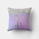 Glam Silver Glitter Drips Elegant Monogram Throw Pillow