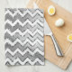 Glam Silver White Zigzag Stripes Kitchen Towel