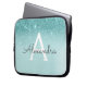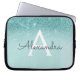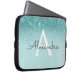 Glam Teal Aqua Blue Glitter and Sparkle Monogram Laptop Sleeve