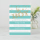 Celebrate a special mom-to-be with this baby shower invitation - faux gold accents on a background of teal and white rugby stripes. Matching products at Noteworthy Printables