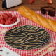 Add a touch of wild glamour to your celebration with this chic zebra-print paper plate in shimmering gold and black. The bold animal stripe pattern gets a luxe update with metallic-inspired golden tones that catch the eye and elevate any event. Perfect for safari-themed bachelorette parties, milestone birthdays, glamourous girls’ nights, or any occasion that calls for a little extra sparkle. Whether used alone or paired with other animal prints, this stylish zebra print brings exotic flair and sophistication to your party decor. Search ID1151 to see all the coordinating products in this design set.