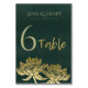 GLAMOROUS GOLD DARK GREEN LOTUS FLORAL TABLE NUMBER