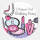 Our Glamour Girl Birthday design is perfect for an especially glamourous young lady on her birthday or anytime. Featuring everything a little girl needs to dress up: nail polish, makeup, lipstick, perfume, hair spray, rollers and jewellery. Purple polka dotted background. Personalize it with your own custom text, even add an age in the compact mirror! On coordinated T-shirts, birthday party invitations, thank you notes and cards, stickers, postage, mugs, tote bags, mousepads, buttons and more! PinkInkArt original!