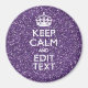 Your personalized Keep Calm saying on a fine custom purple glamour style decor. A personalized Keep Calm style saying on a one of a kind gift. Humourous or whimsical try on your creative words on two editable lines of text. Remember to use CAPITAL letters for best results.