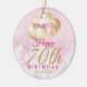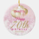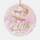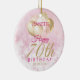A gorgeous glamourous 70th birthday ornament. This fabulous design features blush pink and gold glitter balloons on a rose pink sparkly background. Personalize with a name to wish someone a very happy seventieth birthday.