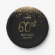 Glamourous Black Gold Glitter 60th Birthday Paper Plate