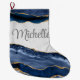 Glamourous Blue Agate on Marble with Gold Large Christmas Stocking