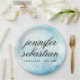 Glamourous Blue Bokeh Light monogram wedding Paper Plate