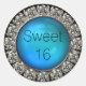 Elegant Sweet sixteen invitation envelope seal sticker done in graphics of a silver tone and turquoise blue bauble with faux diamonds, around the outside. Personalize the black text, to read what you want. Lovely finishing touch to our Glam Snow Leopard Sweet Sixteen Birthday Invitations and envelopes.