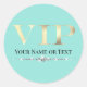 This glamourous VIP sticker label features a sparkly, feminine design on a teal coloured background. The VIP title is printed in a gold foil style font, followed by a sample name or title. A band of diamonds separates the text. You can personalize the sticker to include your own custom name or text.