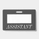 This glamourous and classy badge design features the message "ASSISTANT". A badge like this could possibly be worn to identify that somebody is an official volunteer or assistant at an event.