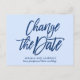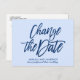 Glamourous Navy Blue glitter script change the dat Announcement Postcard