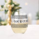 Glamourous stemless wine glass with Greek key meander print. Elegant drinking glasses personalized with text. Trendy glasses for Birthday party, home, wedding and more.