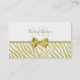 A glamourous designer business card for women with a white and gold zebra pattern and an elegant gold ribbon tied into a girly bow. Personalize this chic and stylish animal print business card by adding your business name and monogrammed initials. Flat printed image, not actual ribbon.