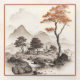 GLASS COASTER - A Village, Red Tree & Mountains