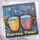 A glass Coaster declaring "Coffee Time" is featured here. The design cannot be removed. ►Optionally, the text can be modified as can the font (including font, color, size, etc.) or add a Logo, etc. Makes a wonderful gift and will look great on the desk! ►Other products with this design may be available in separate listings.