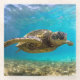 Glass coaster is shown with a photo print of a sea turtle.