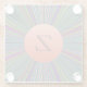 Glass coaster with multi colour burst and monogram in the centre on a lite red tone colour circle. The centre has a dimensional design. Very elegant. a great gift. Very unique. Very unique.