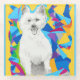 Glass Coasters with a pencil drawing I created of west highland terrier and colourful background.