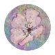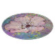 Round glass cutting board with a pretty flower in pink surrounded by paint splatter.  Thanks to the Hungryjpeg and Creative Fabrica for some of the elements in the design.