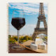 Glass of wine with brie cheese on Eiffel tower and Paris skyline background. Sunny view of glass of red wine overlooking the Eiffel Tower in Paris