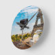 Glass of wine with brie cheese on Eiffel tower Round Clock