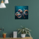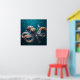 Ocean wall art. This image shows a hyper realistic octopus with a glass-like appearance swimming in the deep ocean. Schools of iridescent fish and sea turtles swim behind it, all rendered with intricate, ultra-detailed textures.