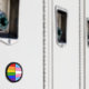 This design combines the gay pride rainbow flag and the trans pride flag. Let's advance together.