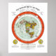 Map of the globe stretched and flattened into a circular plane (azimuthal projection), with two movable arms to calculate time in places around the world.