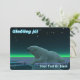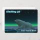 A peaceful moment in the long Arctic night. A Polar Bear rests at the edge of an open area in the pack ice. The Northern Lights glow in the distance; bright stars twinkle overhead. Icelandic text reading "Gleðileg jól" (Merry Christmas) appears in glowing blue and white. Add your own additional text.