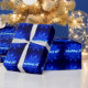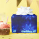 A swarm of blue fractal snowflakes. Icelandic text reading "Gleðileg jól" (Merry Christmas) appears in glowing blue and white.