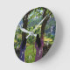 Twin young ladies peer out from behind two trees down into a lush green glen between rocky hills, filled with little farms and hedgerows and stone walls and watered by a sparkling stream that cascades down the hills.
