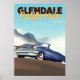 Glendale, California, USA retro car vacation poster.